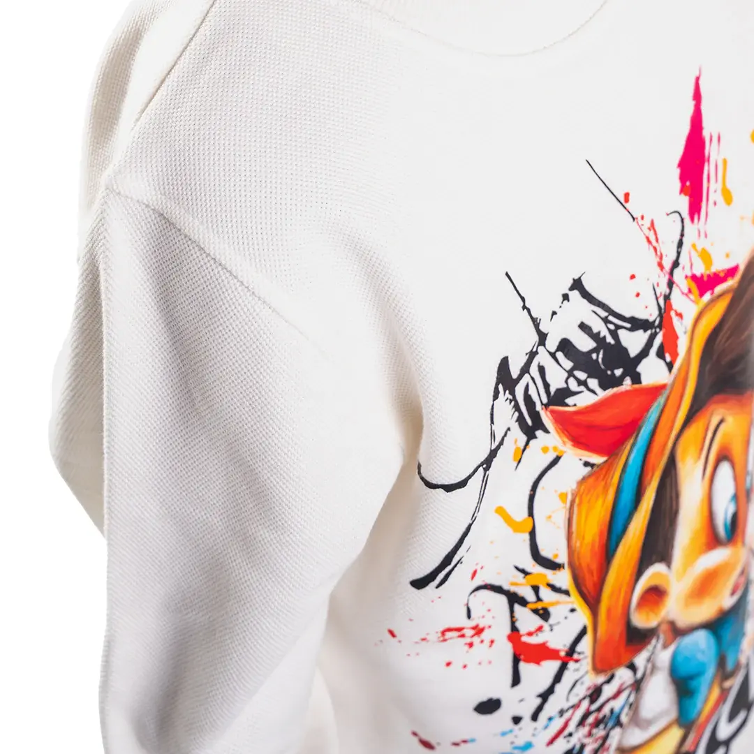 Featuring a bold “Pinocchio” print, it brings a fun, modern vibe to your child’s look — perfect for kids who love video games and expressing their playful side.