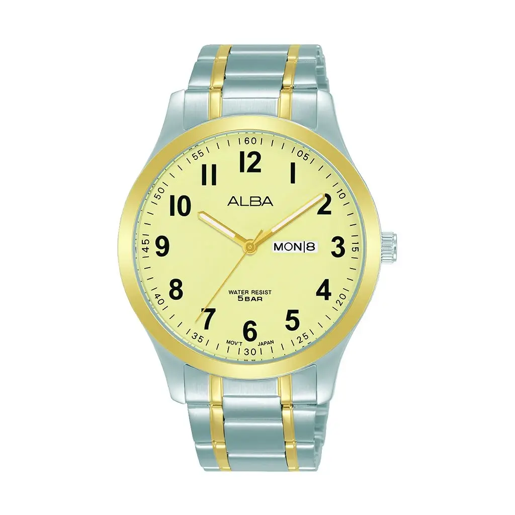 Strap Material: Stainless SteelWatch Movement: QuartzBand Closure: ClaspDial Display: AnalogDepartment: MenStrap Color: Silver & GoldCase Diameter: 40 mmHands Color: GoldDial/Case Shape: RoundWater Resistance: Up to 50 meters
