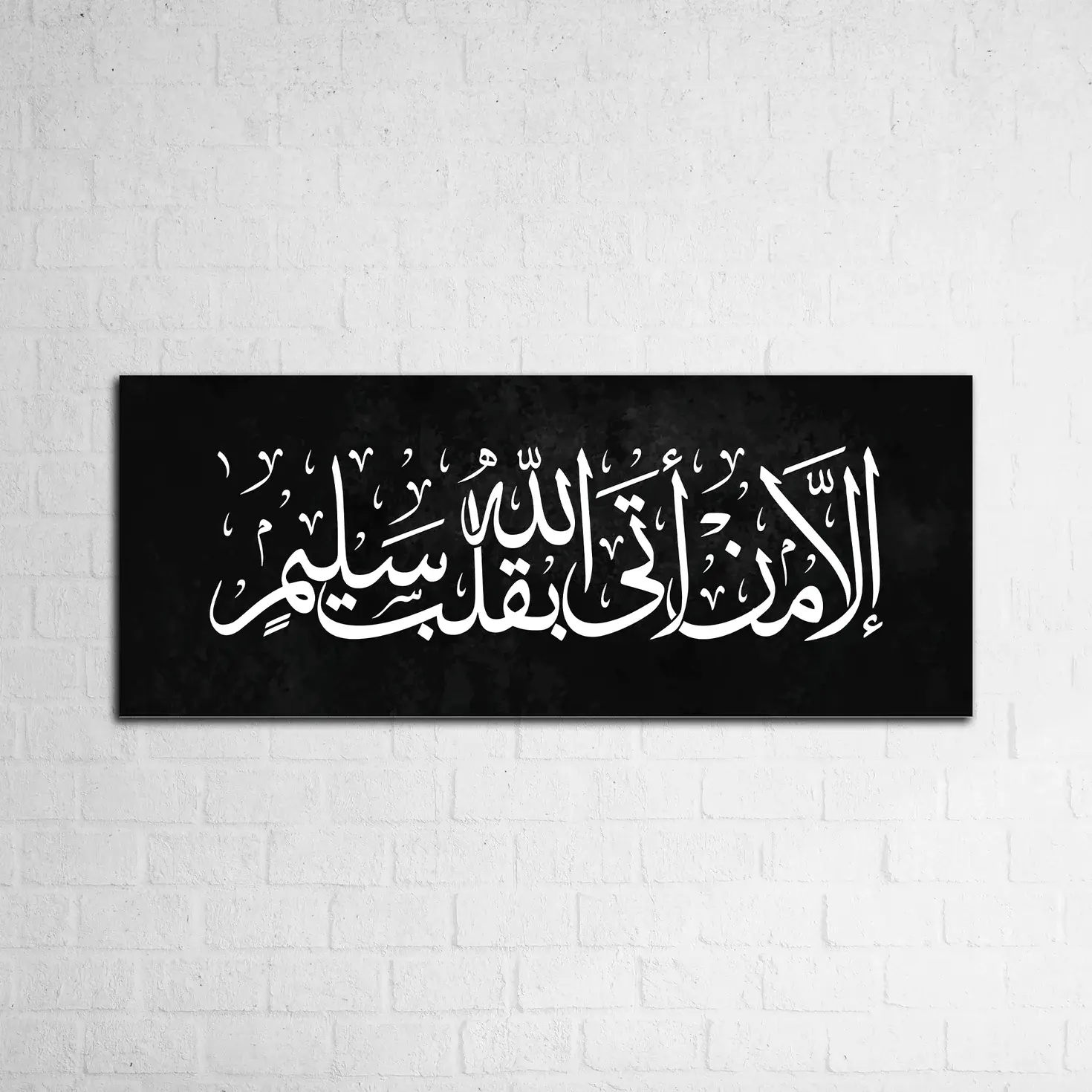 The “إِلَّا مَنْ أَتَى اللَّهَ بِقَلْبٍ سَلِيمٍ” wall art — translating to “Except those who come to Allah with a pure heart” — embodies peace, faith, and sincerity. Designed in elegant Arabic calligraphy on a sleek black background, this piece symbolizes inner purity and the beauty of spiritual devotion.