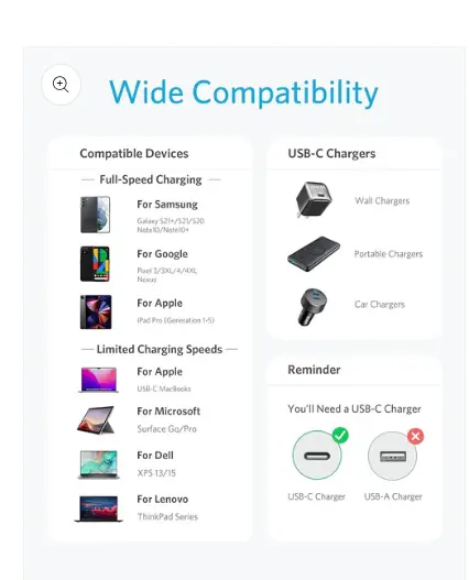 • ast Sync & Charge: Supports up to 15W charging for phones and tablets. Offers SuperSpeed transfer of 5 Gbps—transfer an HD movie in under 5 seconds. (Does not support full speed charging for Nexus 5X, 6P, or Google Pixel XL)