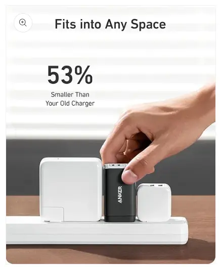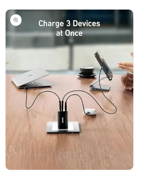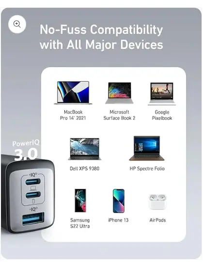 • Compact Design: Power up to 3 devices with a charger that’s roughly the size of an AirPods Pro case.