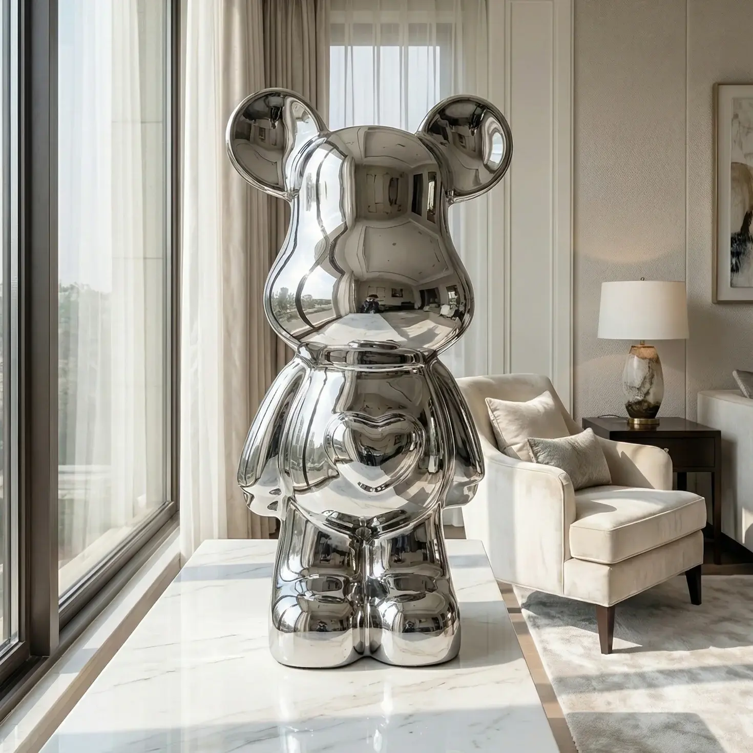 This glossy bear sculpture is a bold decorative piece that blends playful character with a high-shine luxury finish. Its rounded form and reflective surface give it a modern, collectible feel that stands out without overwhelming the space. Designed to catch light from every angle, it works as both an art object and a statement décor accent.