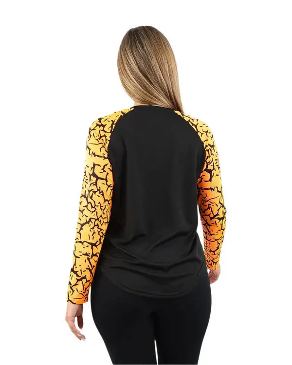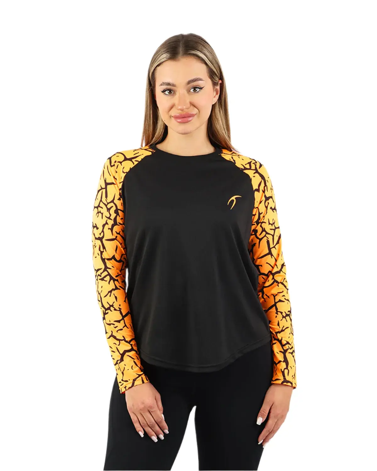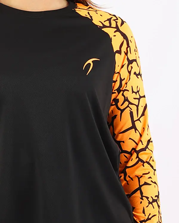 Stay energized with our Orange Crew Neck Long Sleeve Sports Top. Combining comfort and flexibility, this top delivers a premium fit for ultimate style and performance during workouts.