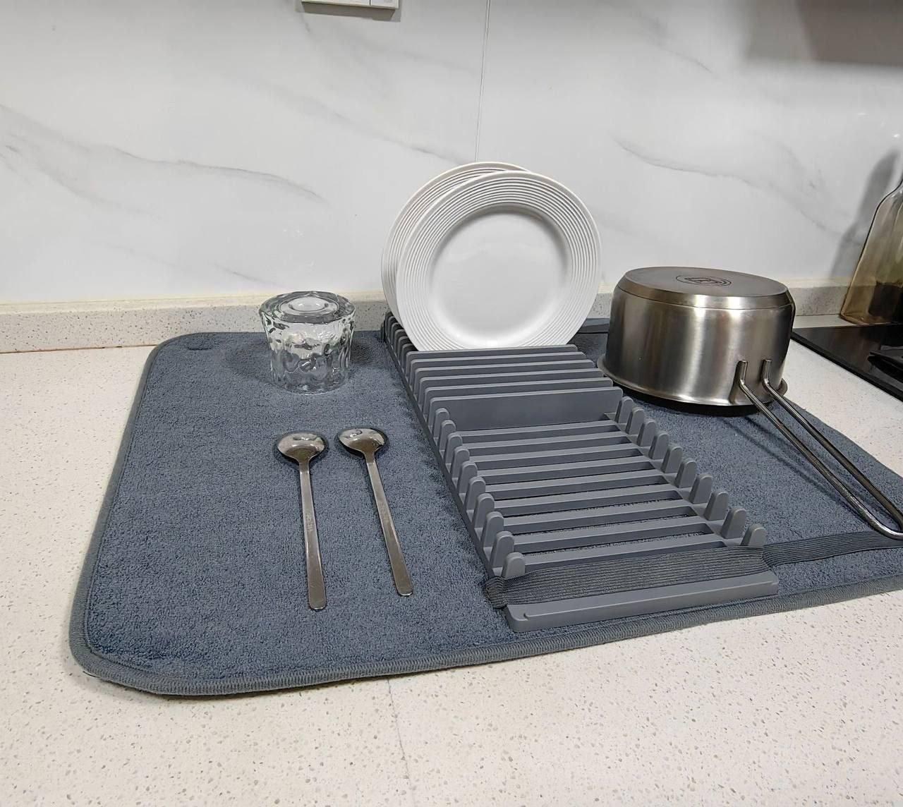 عبارة عن مات تنشيف ملحق معها منظم اطباق عملي جدا خامة ميكروفيبر عالية الكثافة
