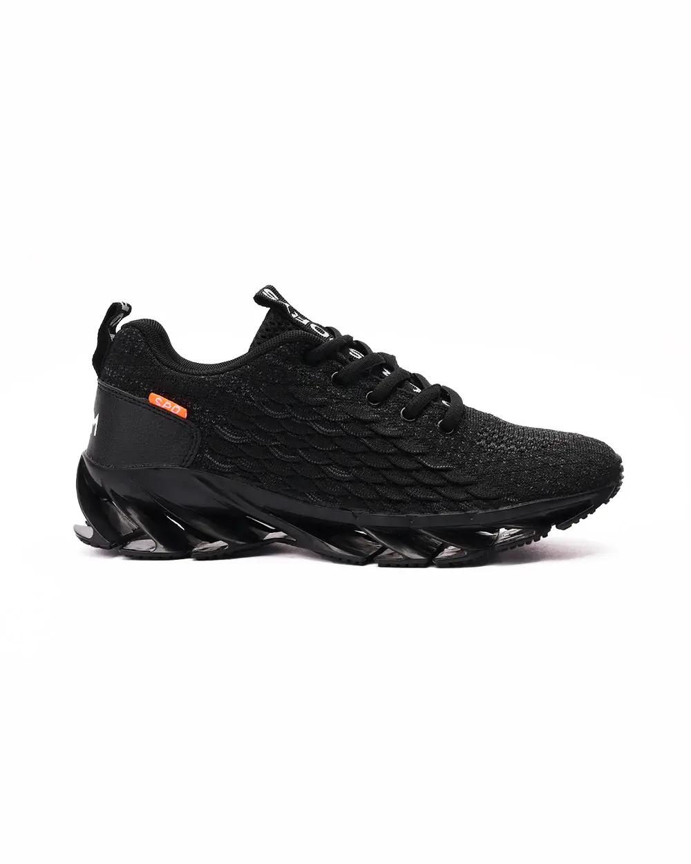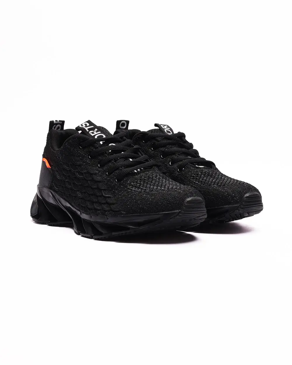 تألق بإطلالة جريئة مع هذا الحذاء الرياضي الأسود بالكامل، الذي يجمع بين التصميم الأنيق والأداء المتطور. يضمن الجزء العلوي المحبوك المحكم التهوية والمرونة، بينما يوفر النعل المنحوت المميز توسيدًا سريع الاستجابة واستعادة للطاقة مع كل خطوة. صُمم هذا الحذاء الرياضي بإغلاق محكم بأربطة، وراحة مبطنة، وعروات سحب لسهولة الارتداء، وهو مثالي للأنشطة الرياضية والنزهات الكاجوال وأسلوب الشارع.