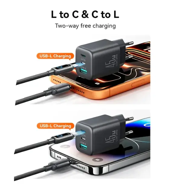 L-port reverse output (30W Max): Multi-device users no longer need multiple chargers and multiple charging cables.