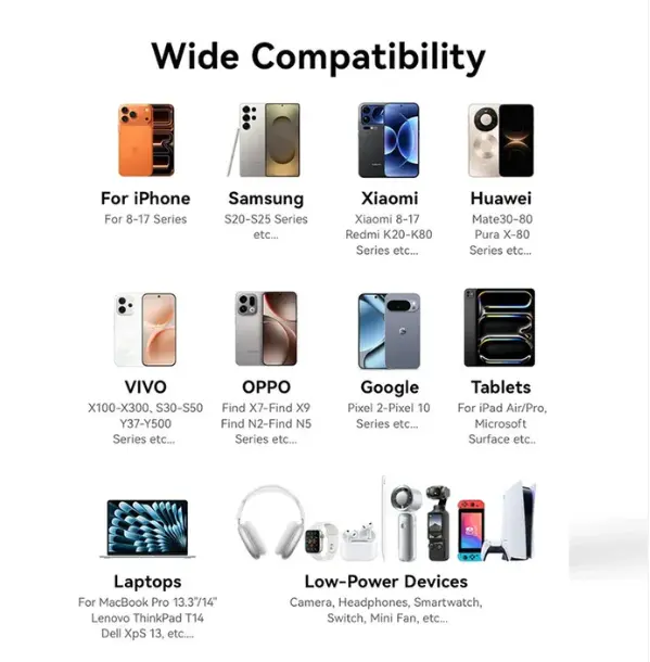 Compatible with a variety of fast charging protocols: Compatible with the new iPhone 16, tablets, laptops, and other brands of equipment.