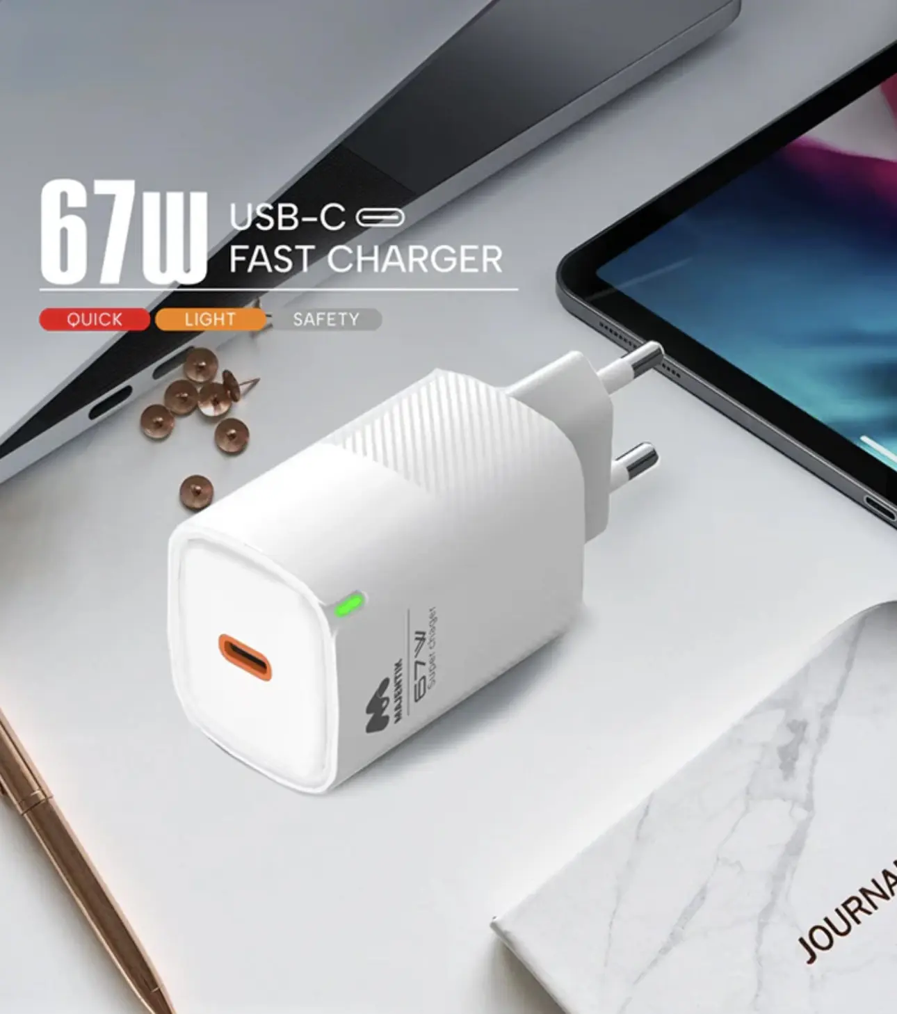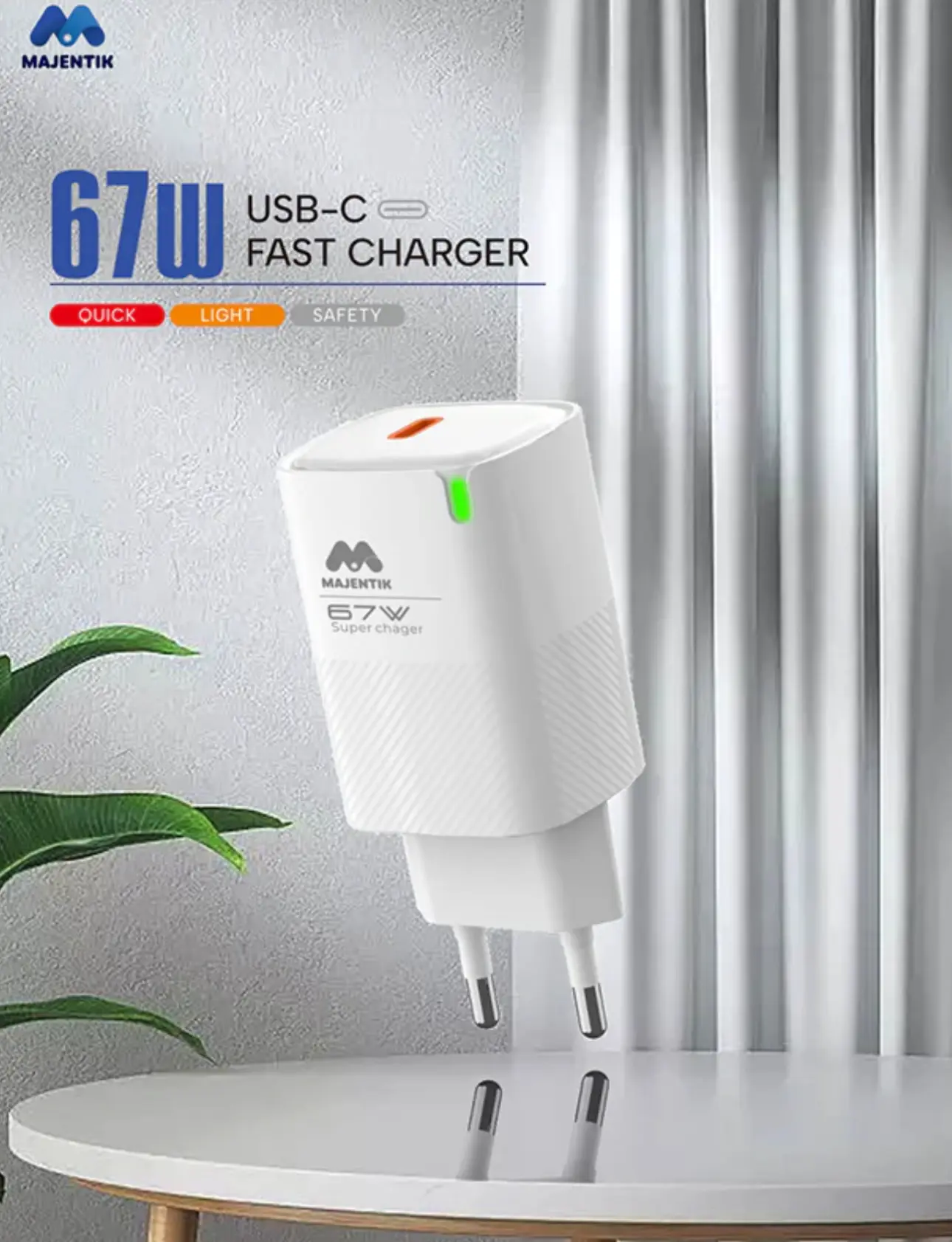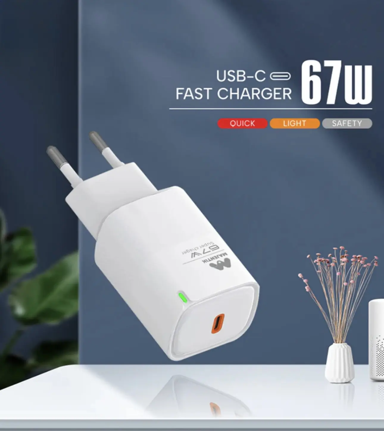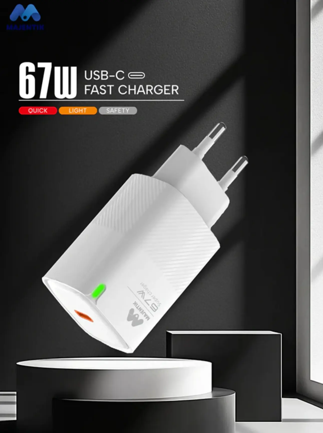 Model: MC-009• Type: USB-C Fast Charger• Power Output: 67W• Features:• Quick Charging• Lightweight Design• Safety Protection• Compatible with PPS Fast Charging Protocol