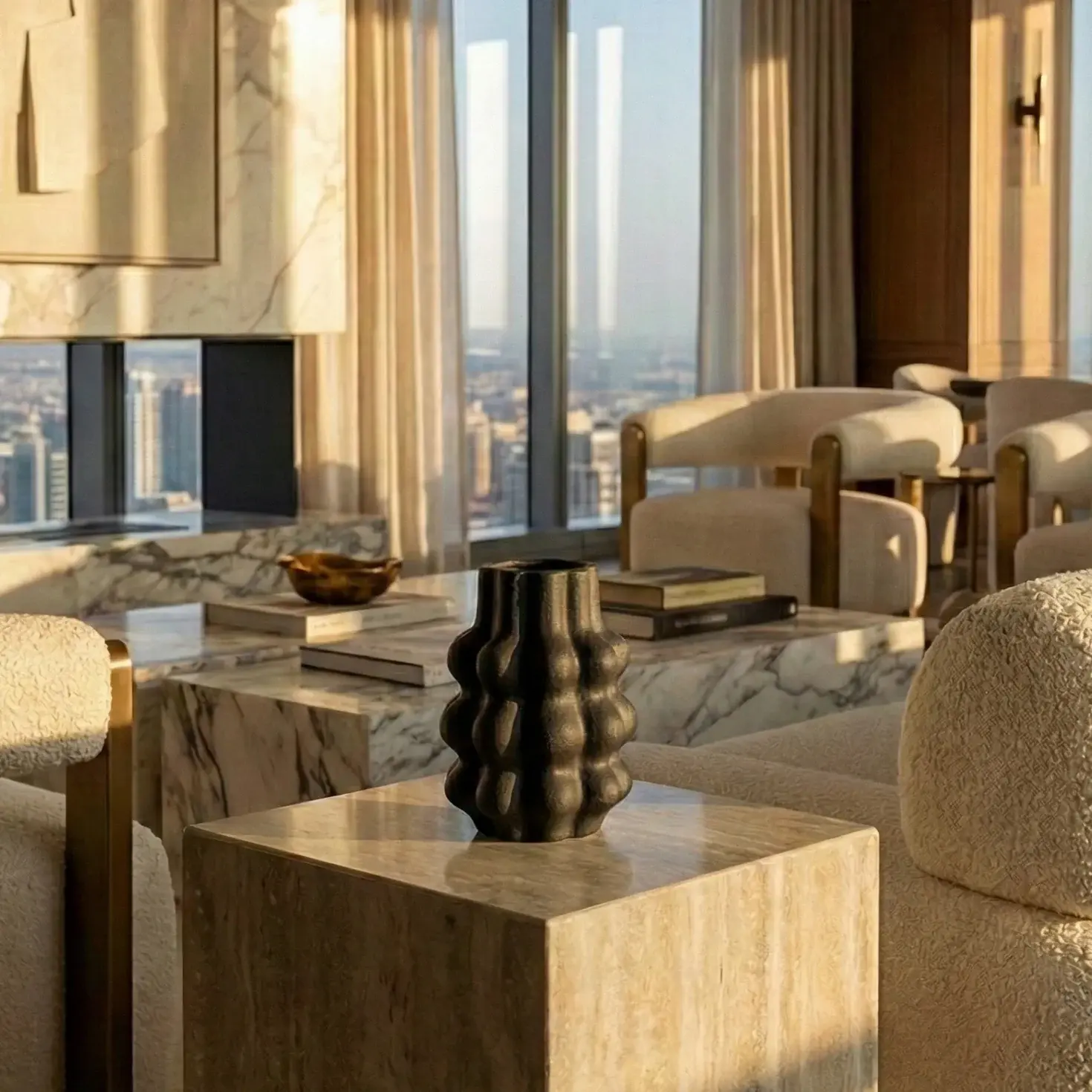 A modern decorative vase defined by its soft, cloud-like geometry and sculpted surface. The organic form creates visual depth and a tactile presence, making it a striking accent piece that balances bold design with subtle elegance. Its minimalist silhouette allows it to stand out while still blending effortlessly into contemporary interiors.