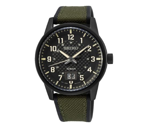 SEIKO Men's Hand Watch QUARTZ Oily Rubber Strap, Black Dial SUR325P1