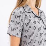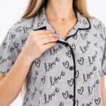 Experience ultimate comfort with our women’s pajamas, featuring a stylish grey and white print that adds a touch of elegance to your loungewear collection. Designed with short sleeves and button details, these pajamas offer a relaxed fit perfect for a cozy night in or a leisurely morning. The soft fabric ensures a gentle touch against your skin, making them ideal for year-round wear. Elevate your sleepwear with this chic and versatile set that combines functionality with fashion.