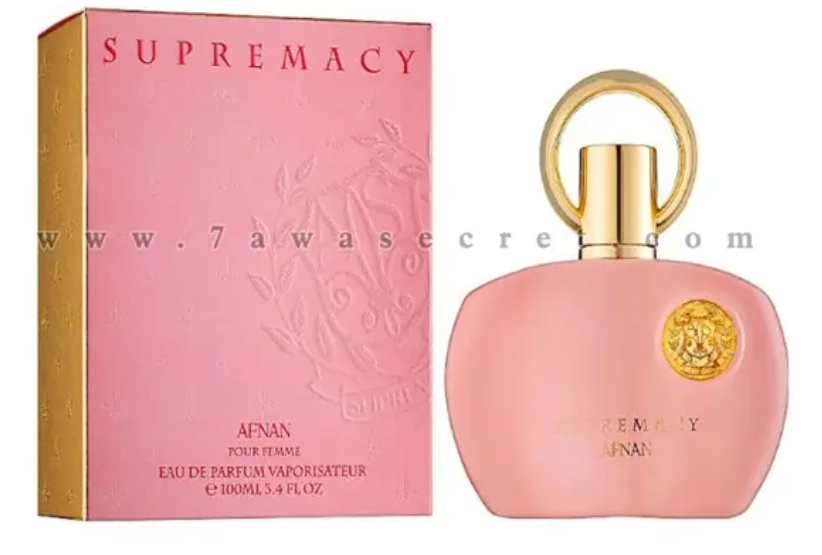 • Supremacy Pink Afnan عطر شرقي – زهري للنساء . إفتتاحية العطر الفلفل الوردي و البنفسج; قلب العطر الورد, الفاوانيا و زنابق الوادي; قاعدة العطر تتكون من المسك و العنبر.