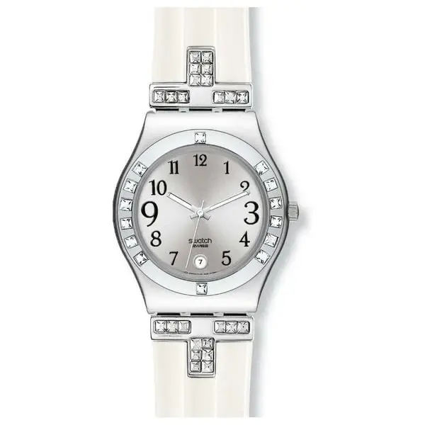 Strap: White silicone with stainless steel buckle