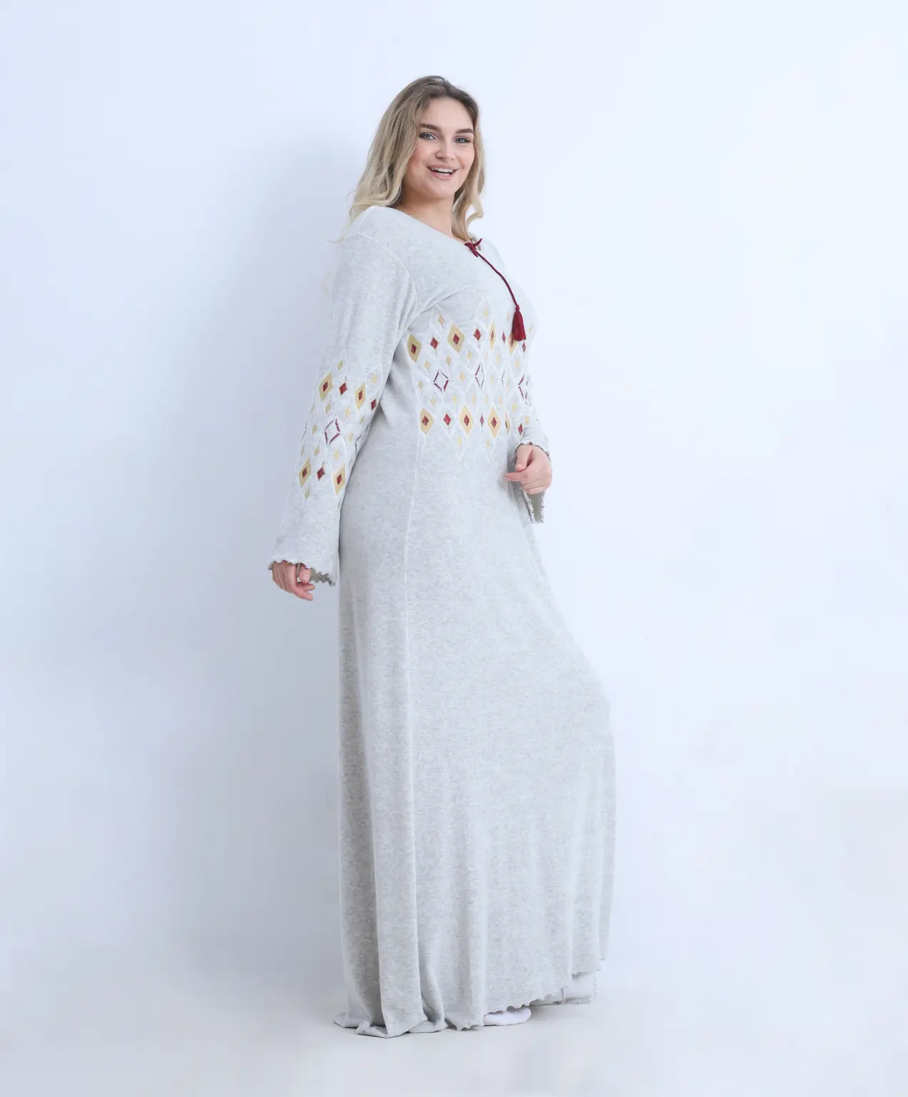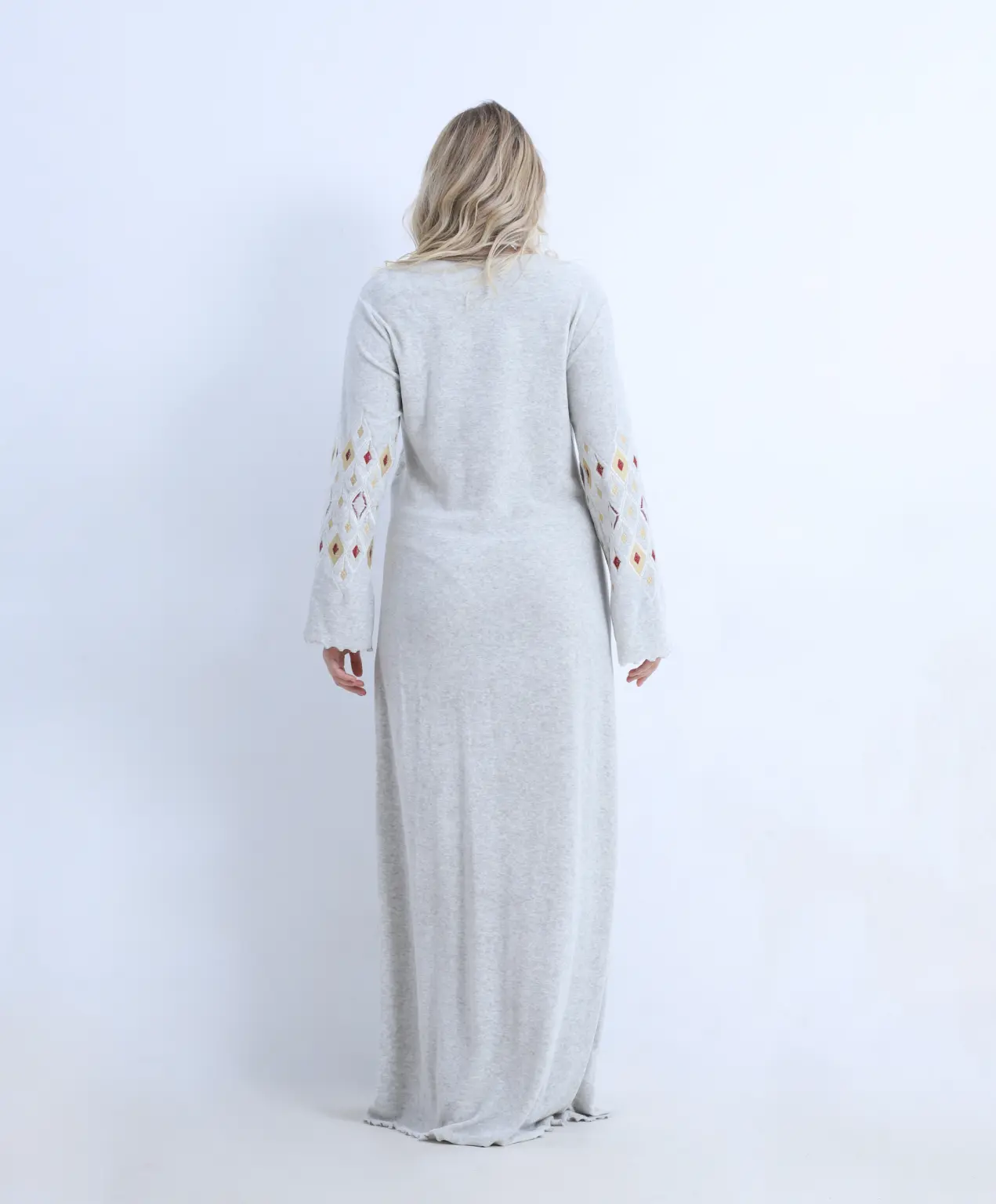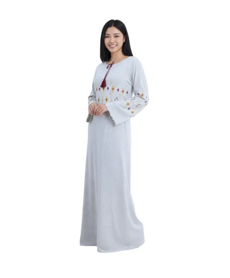 inter Velvet Nightgown Abaya – Soft Embroidered Night Dress with Flared Sleeves
