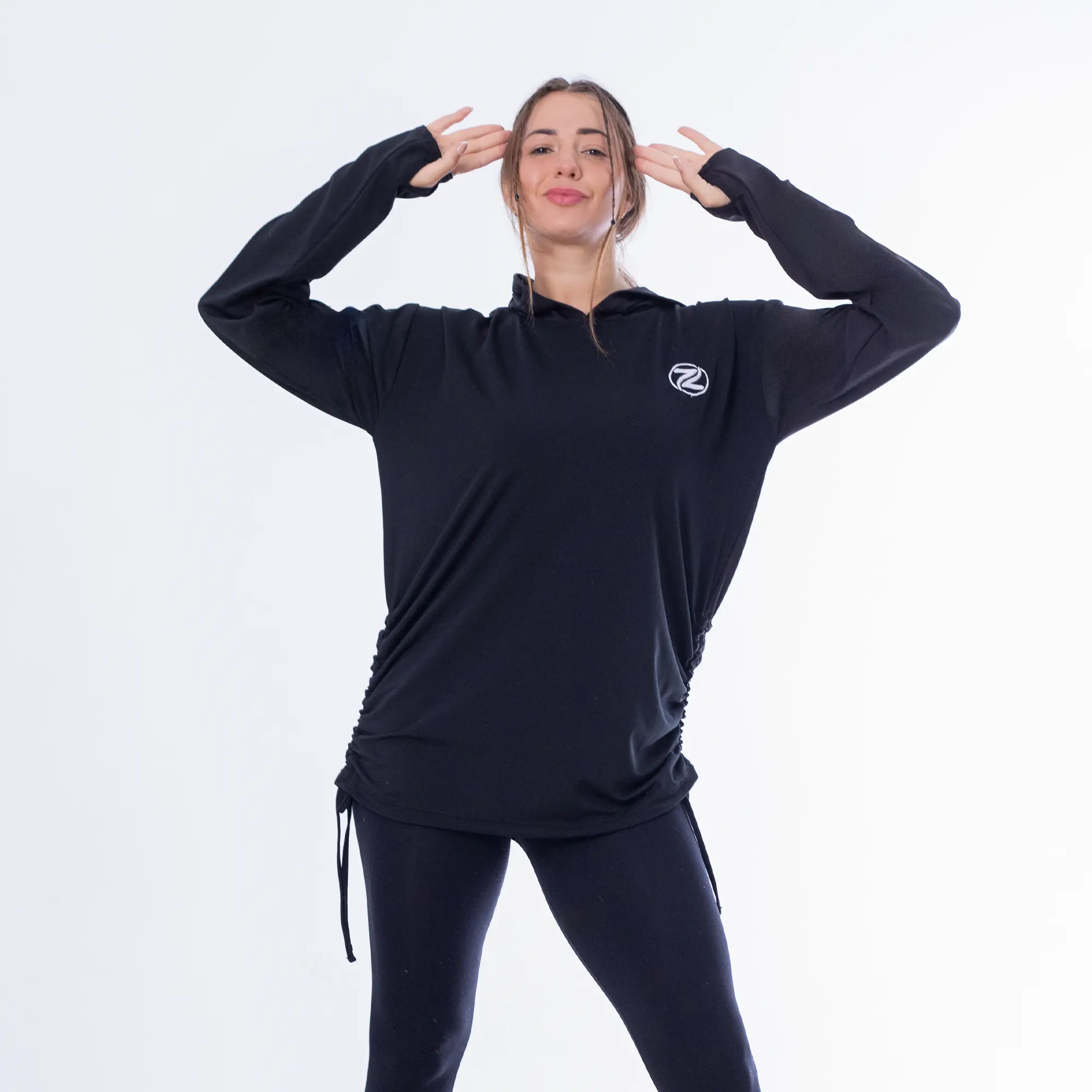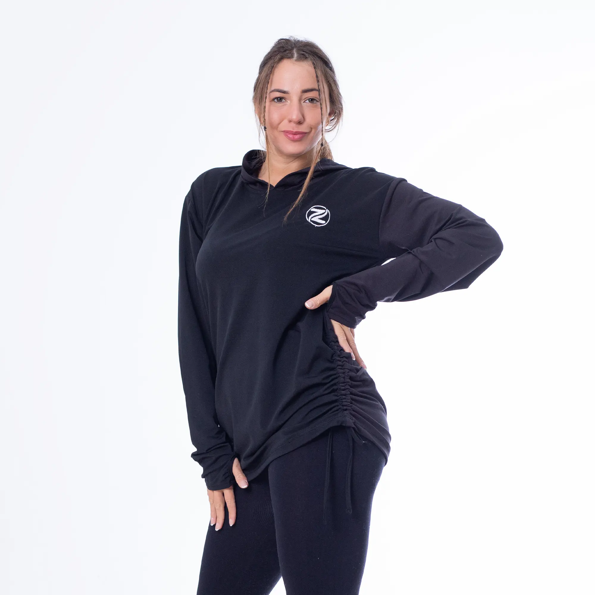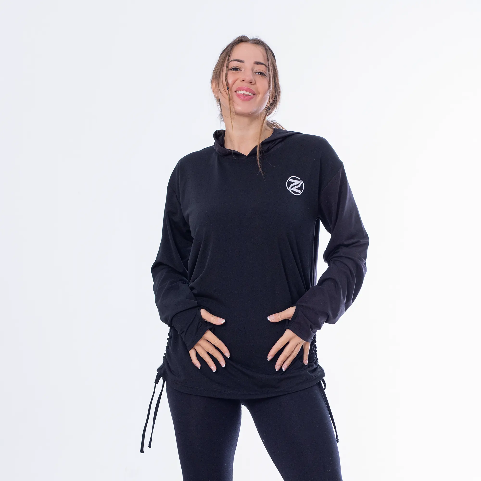 قميص نسائي مع هودي / أكمام طويلة / قميص من الليكرا بالكامل T1
