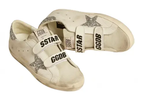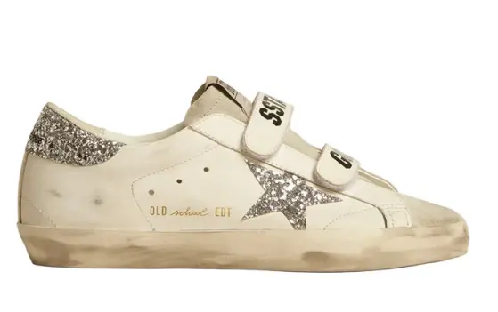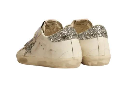 Golden Goose Super-Star Old School with silver glitter star and ice-gray suede tongue(Women's)