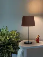 This modern table lamp combines timeless elegance with contemporary simplicity. Featuring a black metal base and a brown fabric lampshade, it provides soft, warm lighting that adds a touch of beauty to any space. Ideal for bedrooms or living rooms, it blends luxury with everyday functionality.