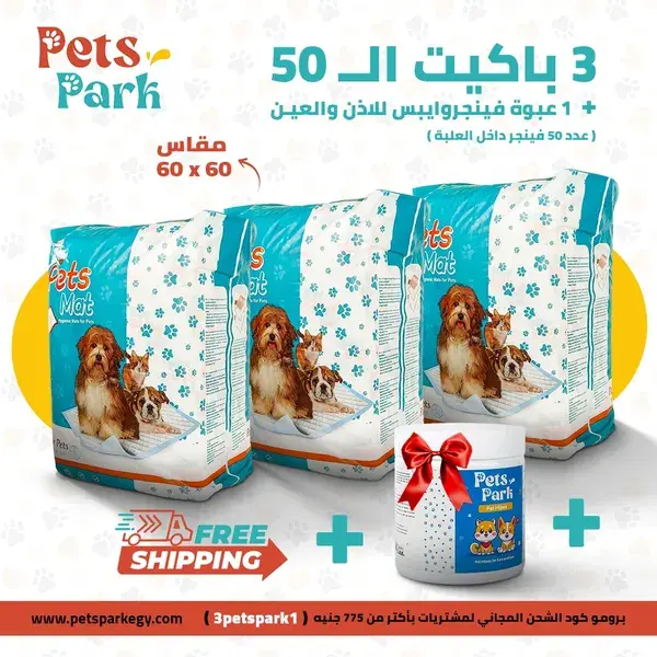-مفارش pets mat مفارش صحية هتساعدك علي تعويد اليفك علي مكان محدد للتويليت وهو مكان pets mat. , وفينجر وايبس للاذن والعين