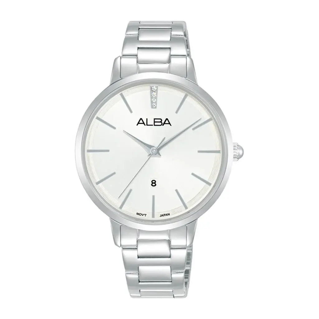 Department: WomenDial Shape: RoundDisplay Type: AnalogDial Color: GreyBand Type: MetalBand Color: SilverBand Material: Stainless SteelBand Closure: ClaspCase Size/Diameter: 42 mmMovement Type: Quartz (Battery-powered)