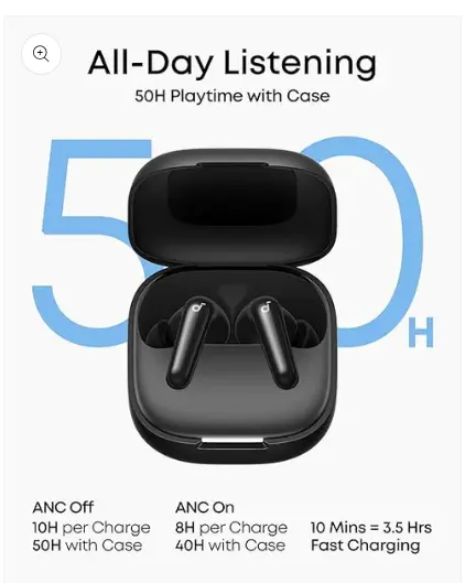 Ultra-Long Playtime & Fast Charging: Enjoy up to 10 hours of playtime on a single charge (50 hours with the case). Even with ANC on, get 8 hours per charge and 40 hours total. A quick 10-minute charge gives 3.5 hours of listening.
