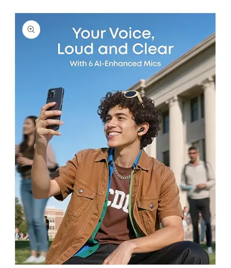 6 AI-Enhanced Mics for Clear Calls: Six microphones work with an AI noise reduction algorithm to separate your voice from background noise. The wind-noise reduction algorithm keeps calls clear even outdoors.