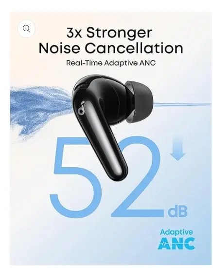 Real-Time Adaptive Noise Cancelling:Advanced ANC reduces noise by up to 52 dB. Adaptive technology detects your surroundings and automatically chooses the best noise-cancelling level for you.