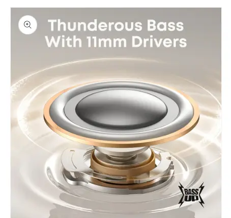 Thunderous Bass: soundcore P41i's 11mm composite drivers deliver captivating sound, paired with BassUp tech to unleash intense, high-impact bass.