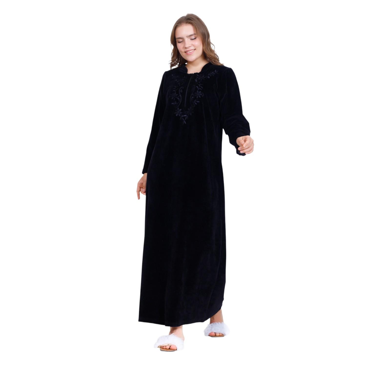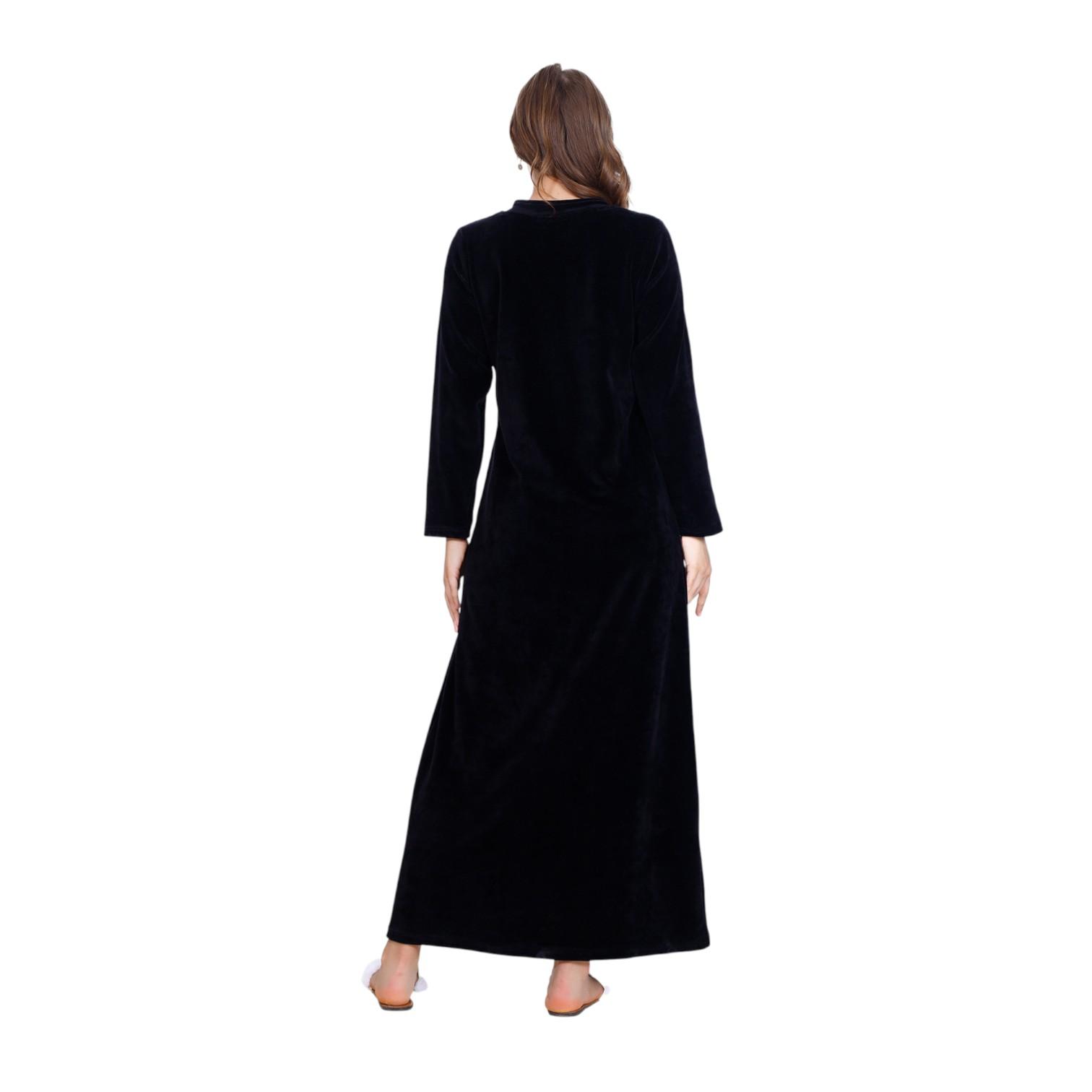Black Embroidered Velvet Cotton Abaya – Soft Winter Loungewear