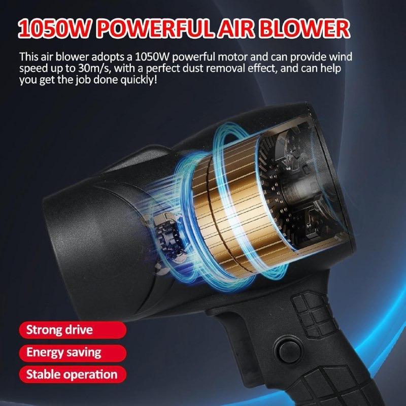 قوة هواء انفجارية بفضل المحرك 1050 واط – ينضف الغبار، نشارة الخشب، وحتّى الثلج بكل سهولة وسرعة.