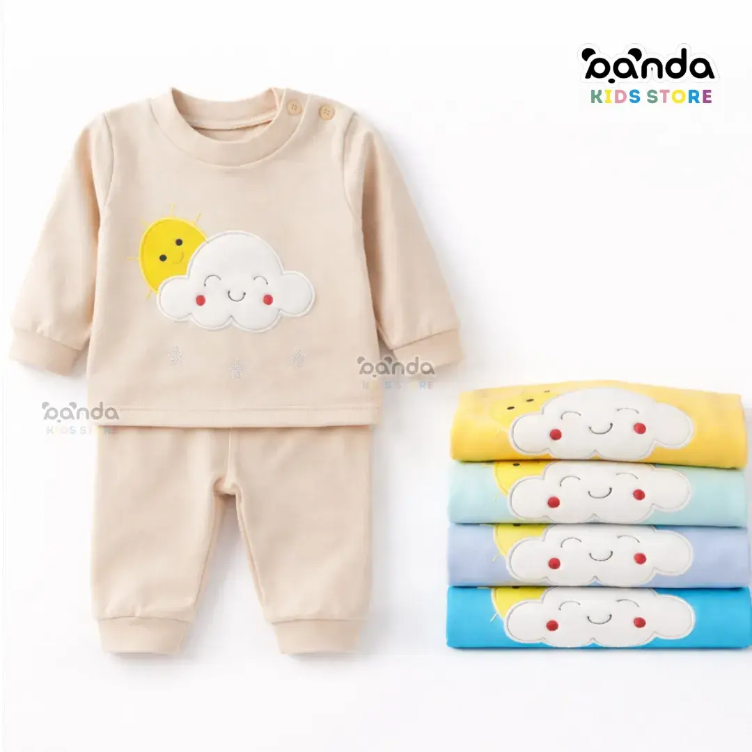 بيجامة بيتي قطن 0-6 شهور بازرار عند الرقبة لسهولة اللبس ، سحابة شمس