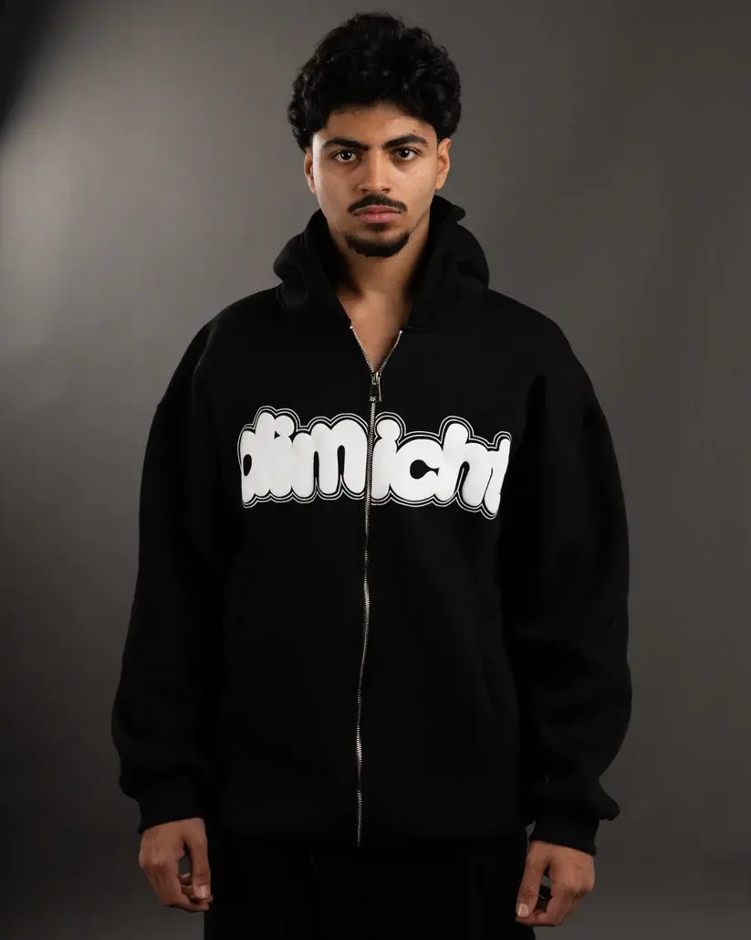Introduction : The name Dimlicht means "dim light," as it incorporates elements from both German and English, giving it a unique feel. It features a brass zipper, embossed print on the front, and a semi-mixed print on the back.
