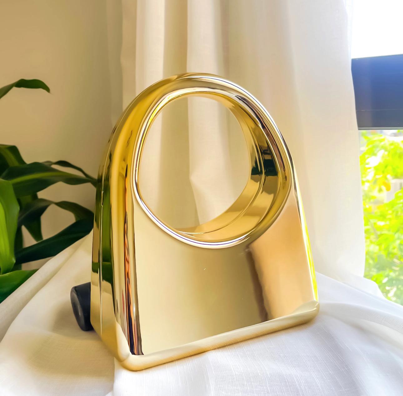 Effortlessly elevate your style with our Gold Halo Clutch. This stunning piece features a halo design, adding a touch of elegance to any outfit. Designed for convenience and sophistication, our clutch is the perfect accessory for any special occasion. Stand out and make a statement with our Gold Halo Clutch