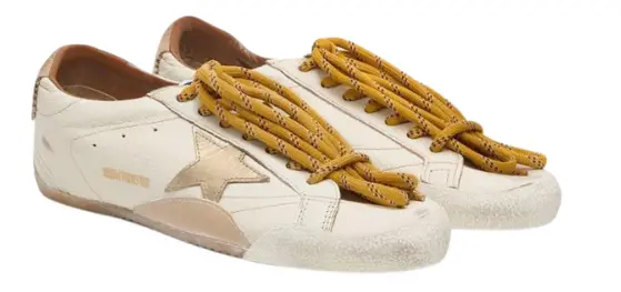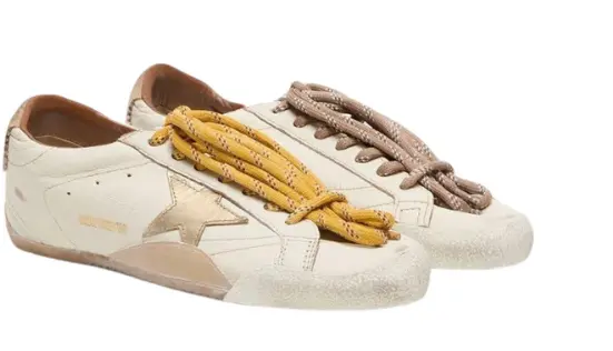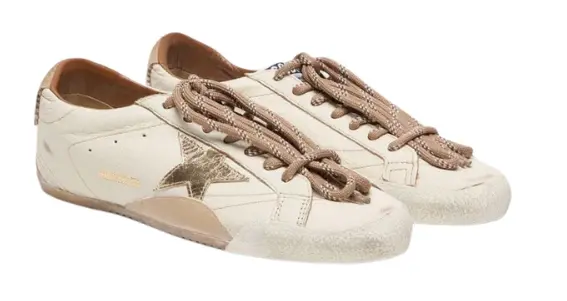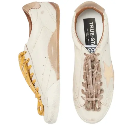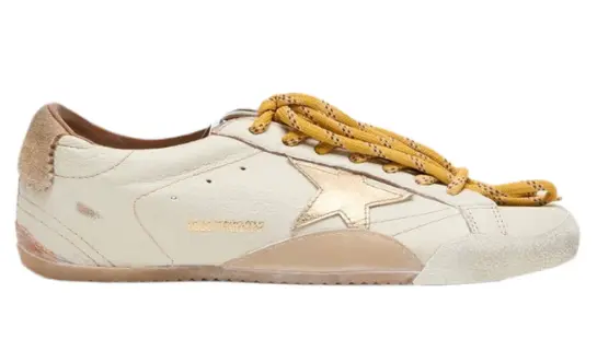 Golden Goose True-Star in white nappa leather with gold star and beige suede heel tab(Women's)