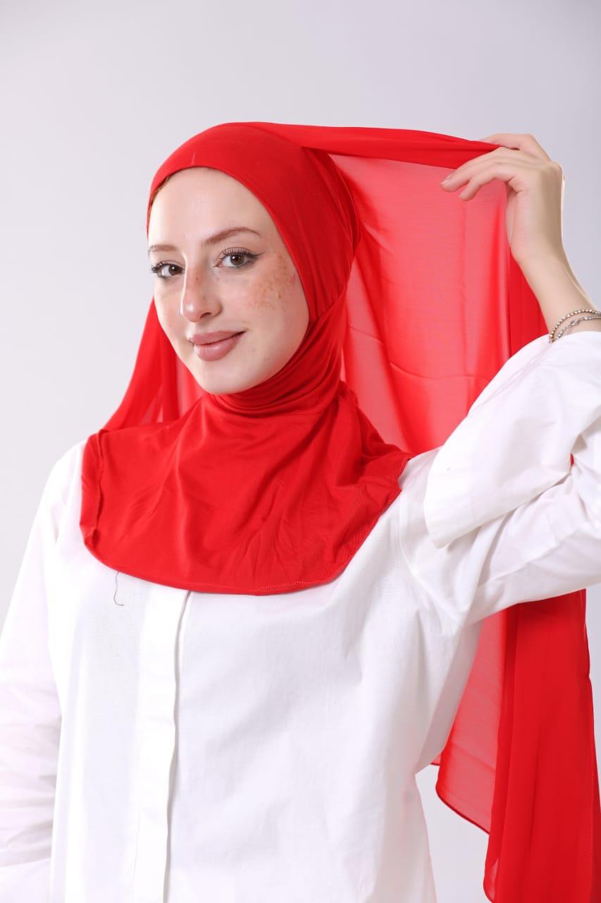 الوصف / طرحه شيفون متخيط فيها بندانة رقبية نينجا