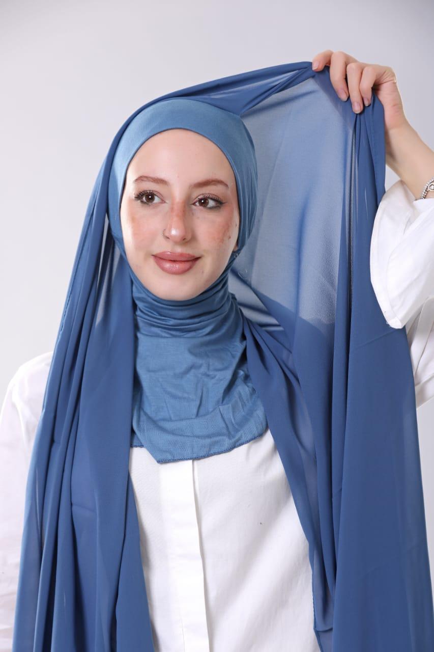 الوصف / طرحه شيفون متخيط فيها بندانة رقبية نينجا