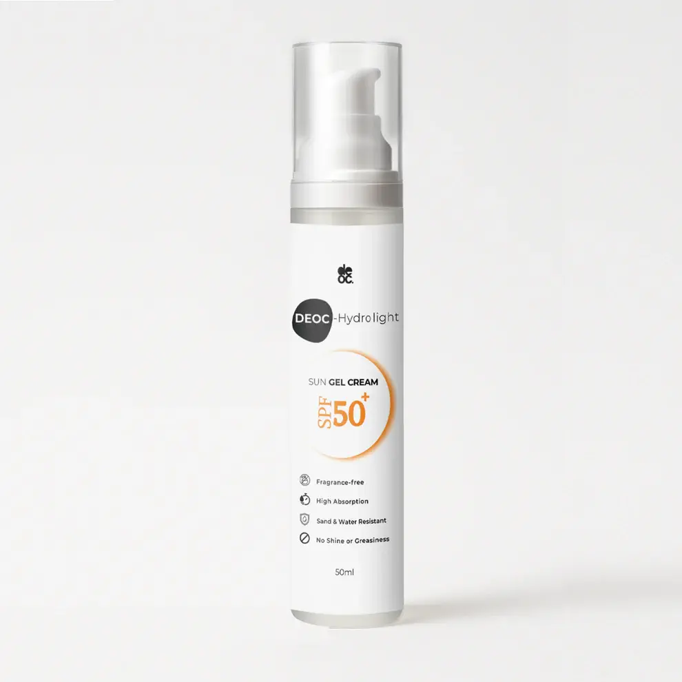 Experience superior sun defense with DEOC HYDROLIGHT Sunscreen Gel Cream SPF 50+ — a lightweight, fast-absorbing formula designed for daily wear. This fragrance-free gel cream provides broad-spectrum protection while keeping your skin feeling fresh, matte, and completely grease-free.