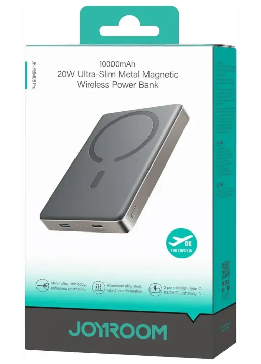 With 20W wireless charging support, the JR-PBM08 Pro delivers rapid, efficient power to your devices. Simply place your phone on the magnetic surface, and the power bank will charge your device wirelessly at top speed