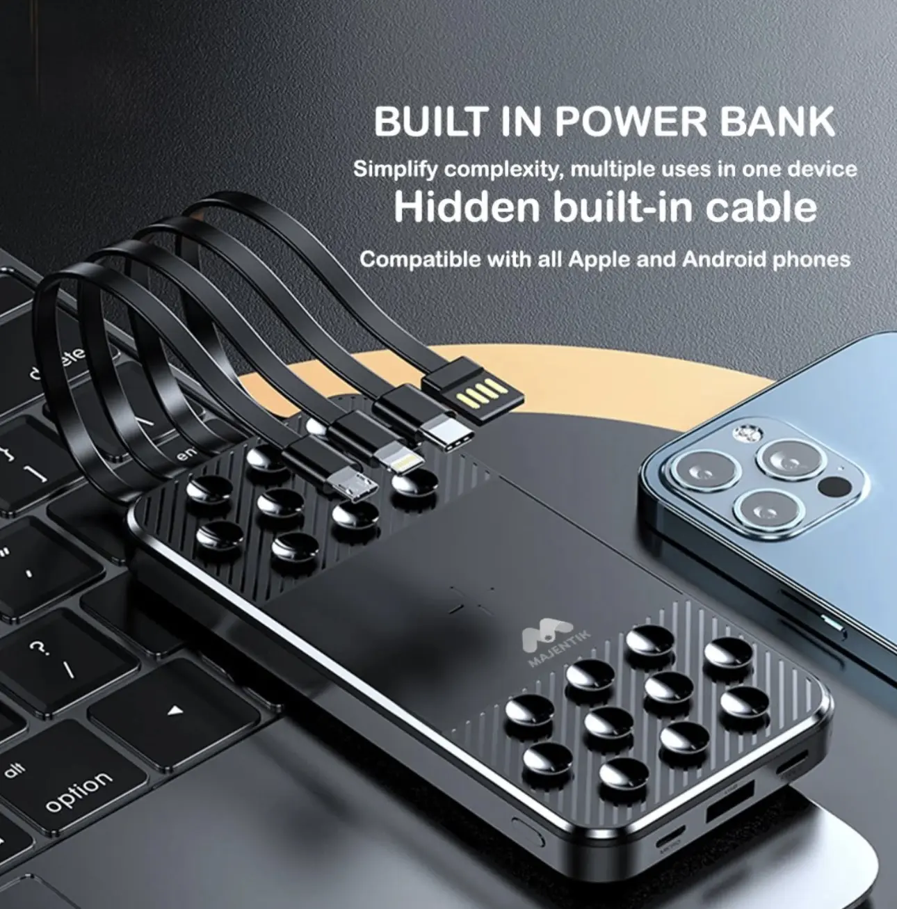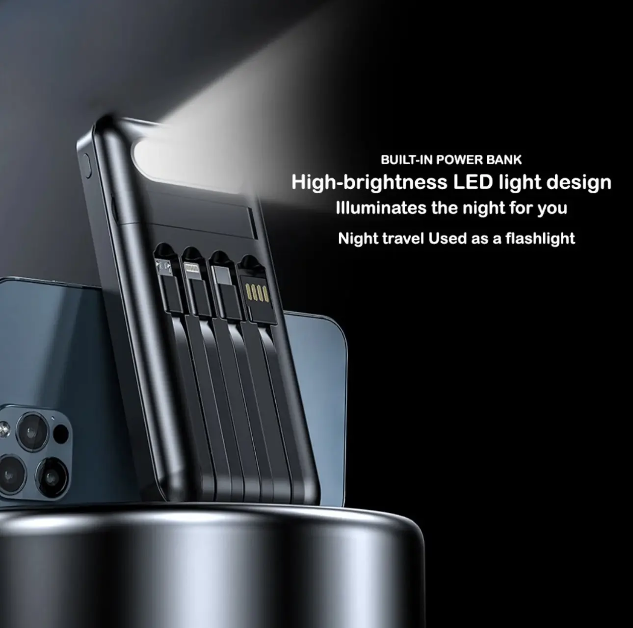 4 built-in cables (Type-C, Micro USB, Lightning, and USB)