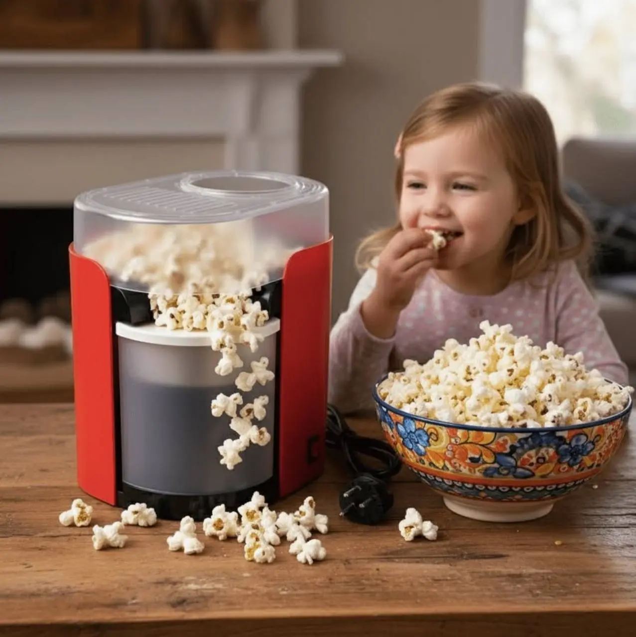 تقنية الهواء الساخن - صحي وبدون زيت Pa تشغيل بسيط : ضع الذرة، شغل، انتظر 2-3 دقائق تنتج فشار هش ومقرمش في دقائق معدودة **