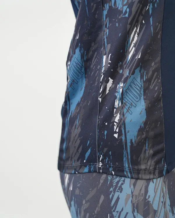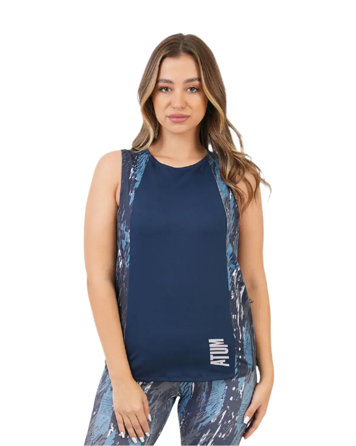 Elevate your workout wardrobe with this navy Marble Printed Women's Top. Made from a soft and stretchy microfiber-Lycra blend, It offers exceptional comfort and a stylish marble print.