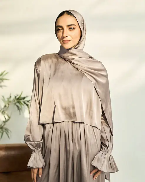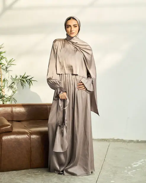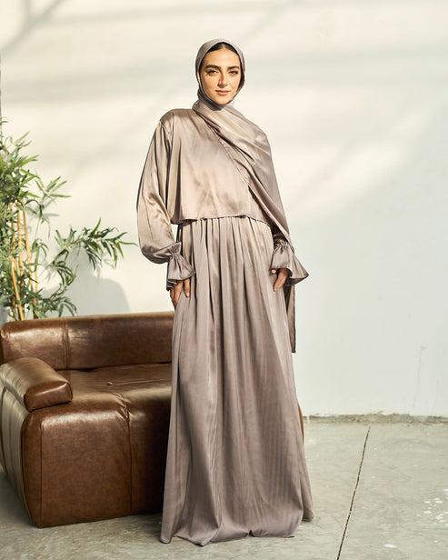 MAUVE SHADOWS SATIN DRESS ISDAL