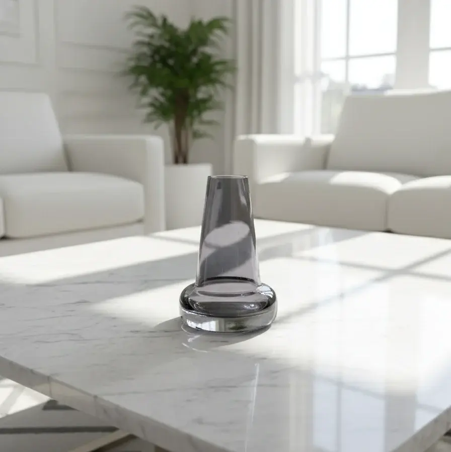 The Smokey Aura Vase embodies a perfect balance between contemporary elegance and artistic minimalism. With its smooth tapered silhouette and deep smokey-grey tint, this sculptural piece adds a modern refined touch to any interior.
