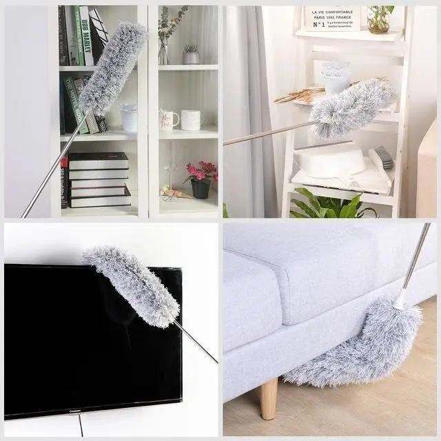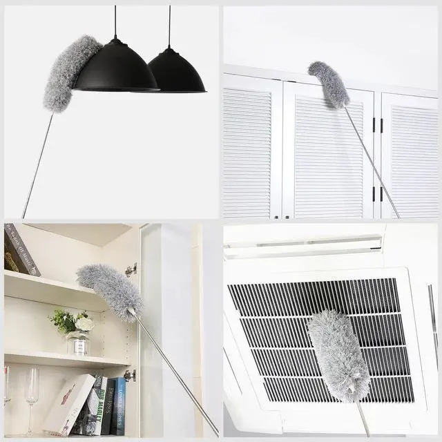منفضة غبار بيد تلسكوبية قابلة للتمديد، مصممة لتنظيف الأماكن العالية والصعبة بسهولة، بشعيرات ناعمة تلتقط الغبار بكفاءة دون خدش الأسطح.