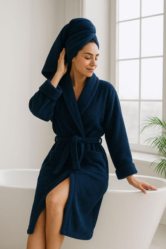 Designed with a relaxed fit, shawl collar, and a matching belt, this robe brings spa-level comfort to your everyday routine. Ideal for after-shower relaxation or lazy weekend mornings.”