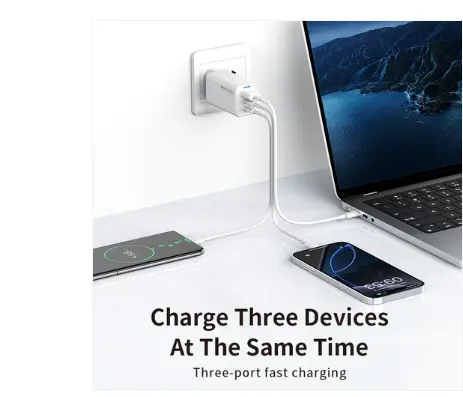 1, dual Type-C+ single USB-A interface design, can charge three devices at the same time;