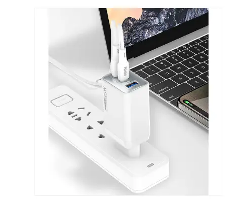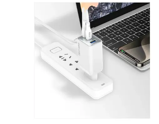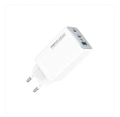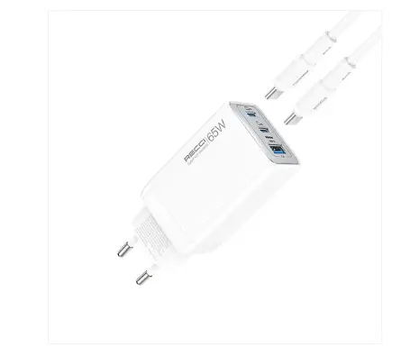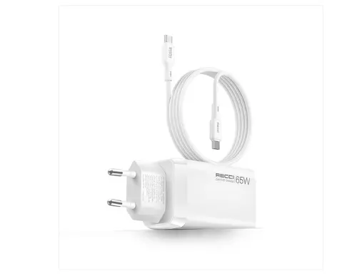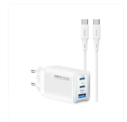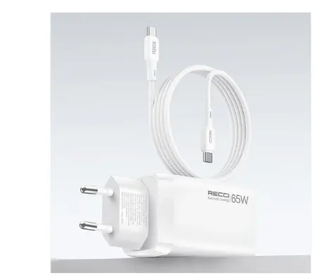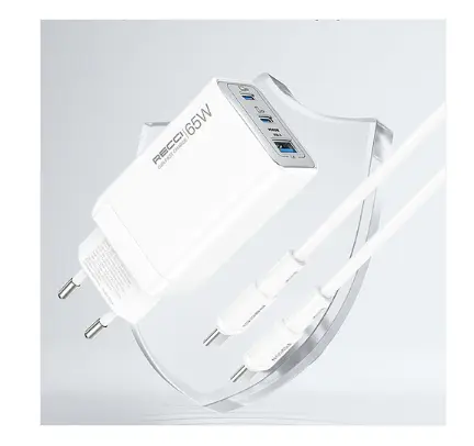The Recci RC123E GaN Fast Charger delivers powerful and efficient charging with advanced Gallium Nitride (GaN) technology. With a total output of 65W, dual USB-C ports, and a USB-A port, it allows you to charge multiple devices at the same time.