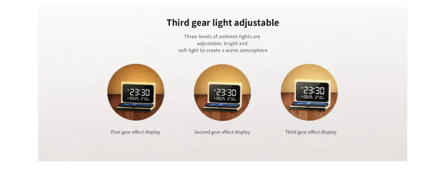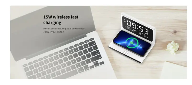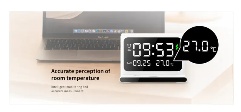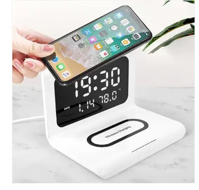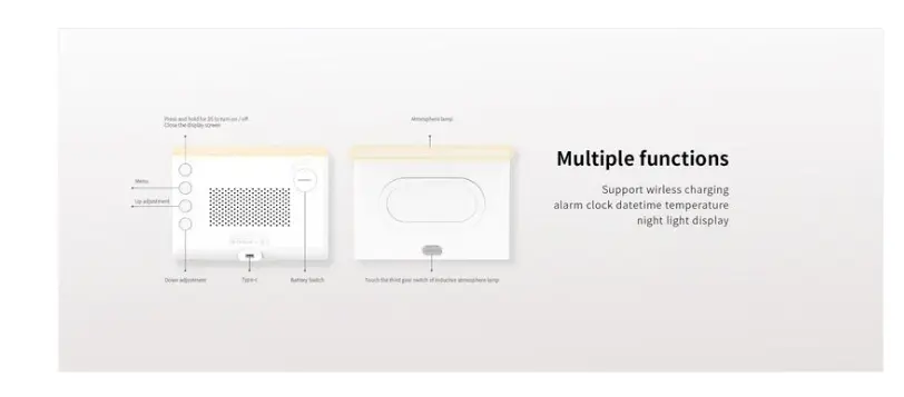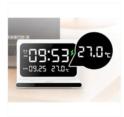 1.Support wireless charging, alarm clock, date, time, temperature and night light