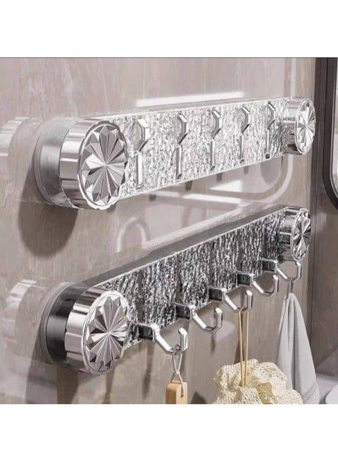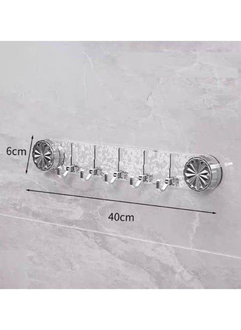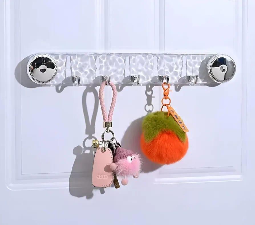 تصميم متعدد الاستخدامات: رف حائطي من الأكريليك الشفاف مزود بخمسة خطافات متينة، مثالي لتنظيم المجوهرات والإكسسوارات والمفاتيح وغيرها من الأغراض الصغيرة.