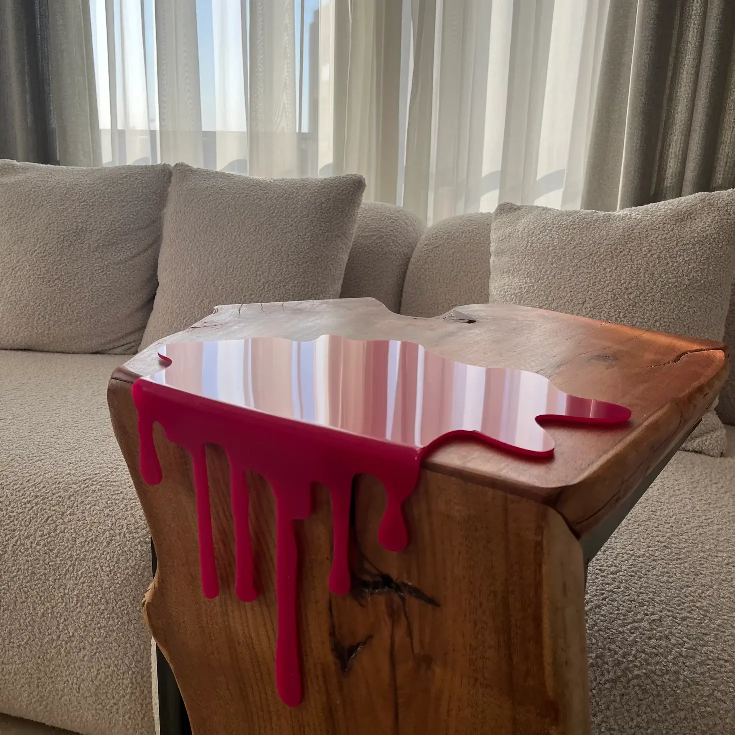 The Acrylic Drip Accent adds a bold, artistic touch to any table surface. Designed to look like liquid color effortlessly flowing over the edge, it transforms regular furniture into a statement piece. Whether placed on wood, marble, or glass, the dripping silhouette creates a modern, eye-catching contrast.