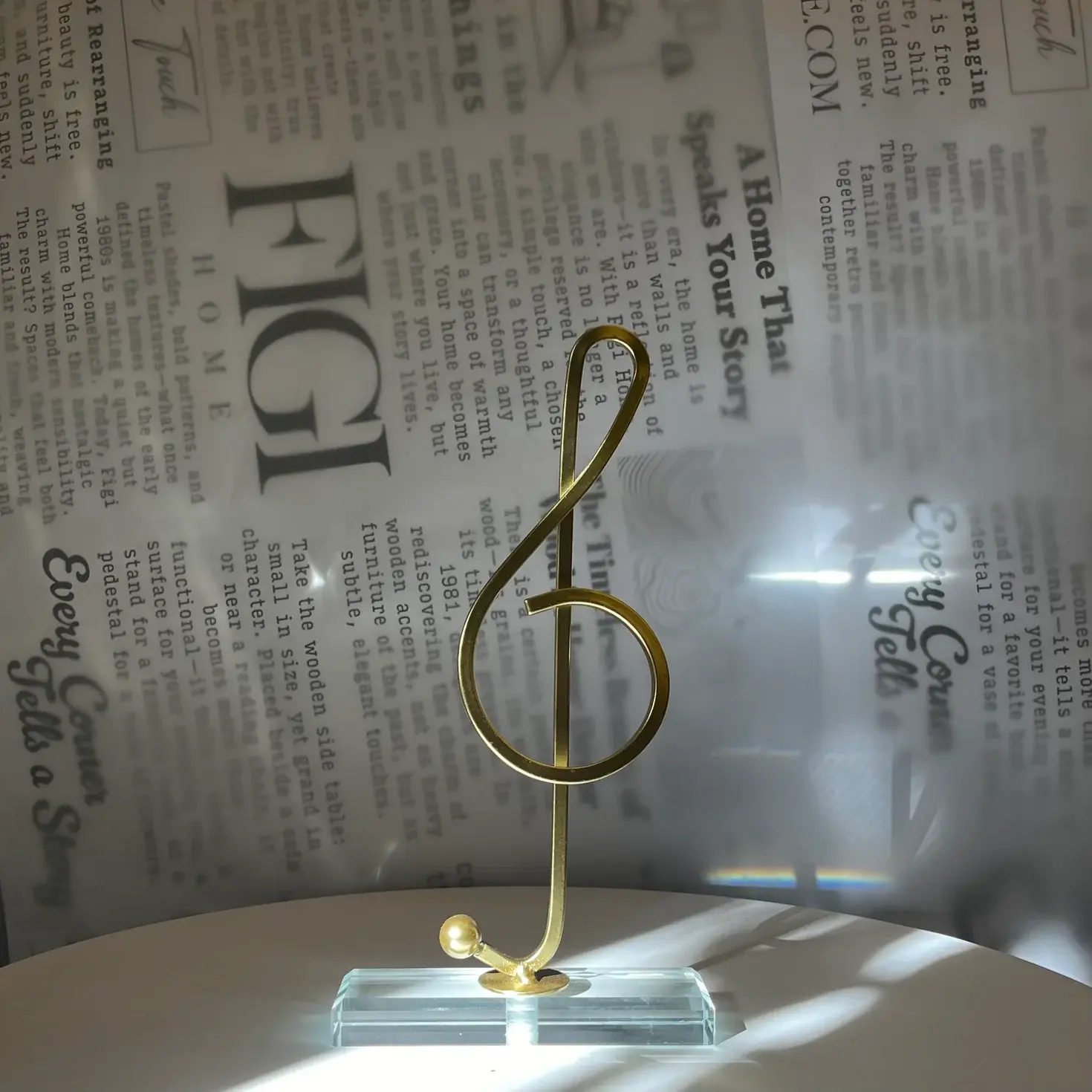 A sleek decorative piece inspired by the elegance of musical form. Its flowing golden line feels light and modern, while the clear base adds balance without taking attention away from the sculpture itself.